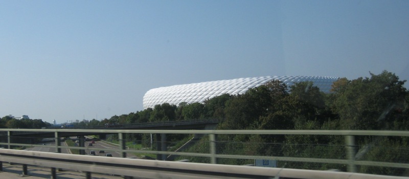 Naarmate ik dichter bij München kom wordt het steeds drukker en ondanks de 4 en soms 5 banen staat het helemaal vol. Ik sla af richting Salzburg “maar er moeten meer die kant op” en dus heb ik alle tijd om de Allianz Arena van Bayern Munchen op de foto te zetten: