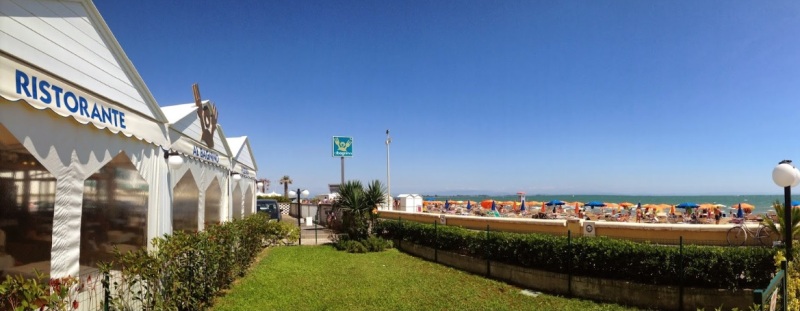Daar blijkt mn contactpersoon niet aanwezig en dus laat ik de papieren achter en als ik weer terug ben bij de receptie van Camping Sabbiadoro kan ik direct met Arno in gesprek. Het gesprek is prima en even later is alles geregeld. En dus ga ik er vandoor. Over de prachtige boulevard tussen Lignano Sabbiadoro en Lignano Riviera rijd ik richting Camping Village Pino Mare. Aan mn linkerzijde passeer ik een eindeloos strand met ontelbare eettentjes en terrasjes. Prachtig!