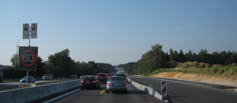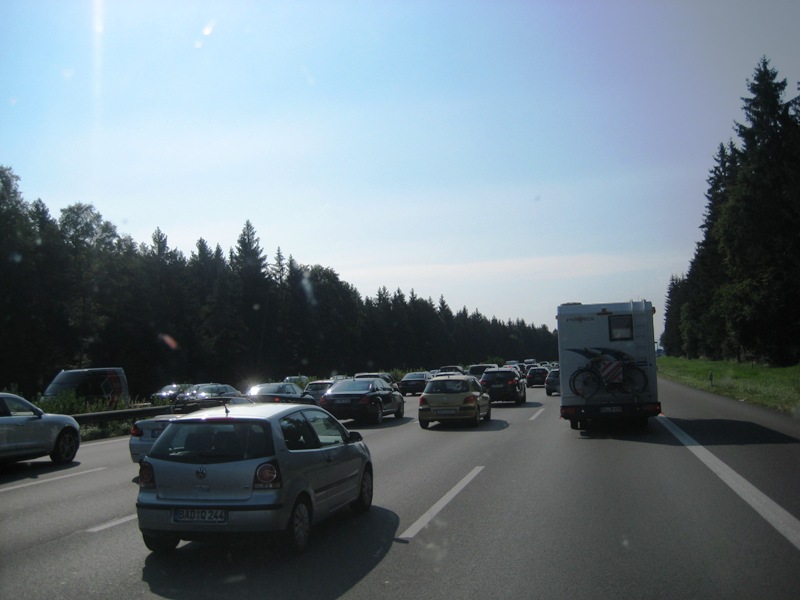 Even later ben ik Nürnberg voorbij en wordt het 6-baans richting München. Een groot gedeelte kan ik op cruise-control rijden, maar bij Ingolstadt is het drukker en tussen Ingolstadt en München zijn ze met de weg bezig en dus kom ik even later in de file: