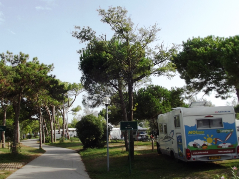 Eenmaal weer op pad rijd ik langs Udine (je weet wel van Udinese ) sla even verder op de splitsing af richting Trieste en pak na 15km. de afslag bij Monfalcone West. Hier ken ik inmiddels goed de weg en om 16.25 rijd ik Camping Village Tenuta Primero op. Hier heb ik morgen een afspraak en dus meld ik me bij de receptie. Daar zijn ze zeer behulpzaam en ik mag de camping oprijden om een plekje te zoeken. Want lopend deze grote camping op en dan weer terug richting receptie ga ik waarschijnlijk niet meer redden ha ha.