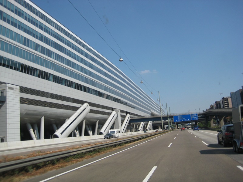 Nadat ik even ben gestopt om wat te eten, gaat de rit verder en rijd ik even later langs het vliegveld van Frankfurt waar ik ingehaald word door een vliegtuig: