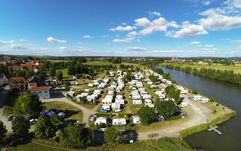 Vorig jaar in het voorseizoen (toen ik samen met Hennie onderweg was naar Kroatie) hebben we direct aan de Main gestaan (zie foto hieronder), maar meestal sta ik voor bij de receptie. Want morgenochtend vertrek ik heeeeeel vroeg. Camping Mainblick ligt aan de rand van het dorpje Schwarzach am Main, de camping ligt eigenlijk tussen het dorpje en de Main: