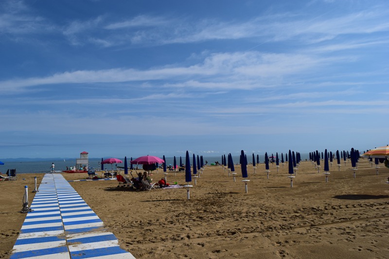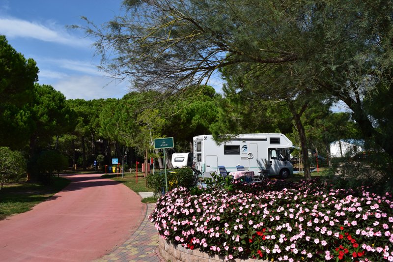 En dus kruip ik weer achter het stuur en moet nu even schakelen. Want de volgende camping had ik nog niet voorbereid. Even later ga ik op pad en via een grotendeels ondergelopen boulevard rijd ik richting Camping Village Pino Mare. Ook in Lignano, maar dan in Lignano Riviera … aan de andere kant van de stad. Even later meld ik bij de receptie, word herkend door de receptioniste en ze geeft aan dat ik wel door kan rijden.