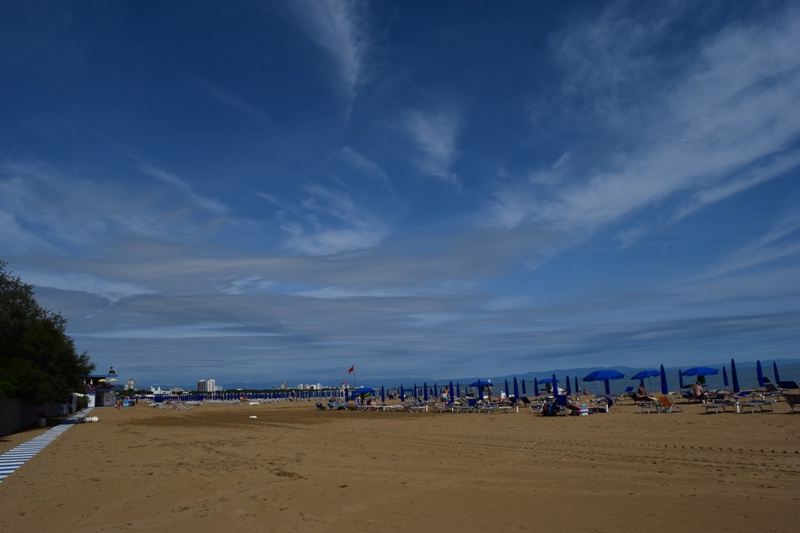Daar is het nu niet echt druk, dat zal in de zomer wel anders zijn…. Aan de overkant kun je trouwens vanaf het strand Slovenie en Kroatie (Umag) zien liggen. Grappig …