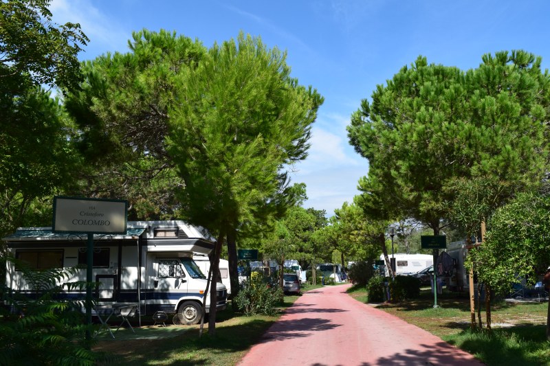 Terug in de camper besluit ik voor Camping Al Boschetto te kiezen. Eigenaar Massimiliano is niet altijd aanwezig en als ik daar overnacht kunnen we – als hij er niet is – misschien later in gesprek. Ik worstel me door de drukte vlakbij Camping Union Lido – samen met Marina di Venezia – 1 van de grootste campings van Europa en meld me om 12.45 uur bij de receptie van Camping Al Boschetto.