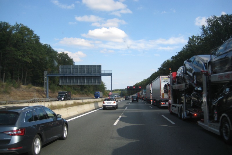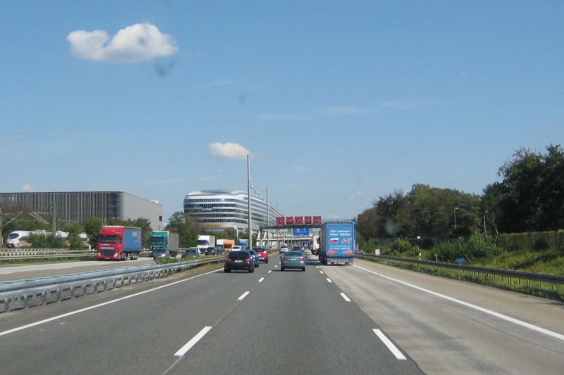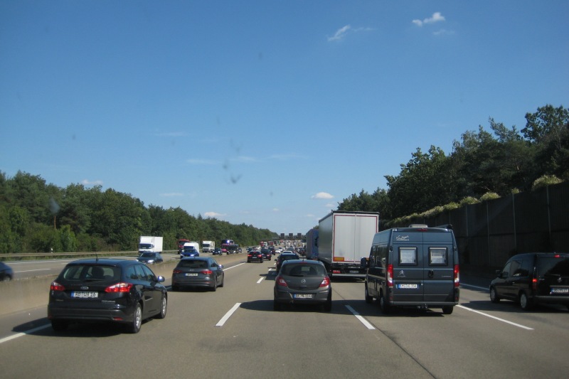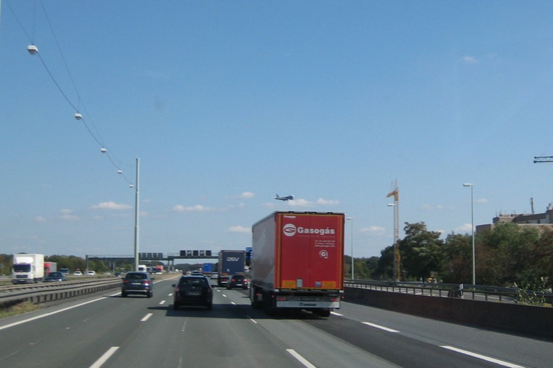Het 1e stuk in Duitsland richting Oberhausen gaat prima, maar bij Dusseldorf is het behoorlijk druk. Om de haverklap zegt mn navigatiesysteem trouwens “opstopping in het vooruitzicht”, en de meeste keren klopt het helaas ook. Sjonge jonge … het lijkt wel of ze om de 10km. met de weg bezig zijn. Maar het zijn gelukkig steeds kleine stukjes en ik kan redelijk doorrijden. Even voorbij Bonn stop ik even om een broodje te eten. Het weer is prima, droog en niet te warm. Prima weer om te rijden. Een eindje verder passeer ik het vliegveld van Frankfurt: