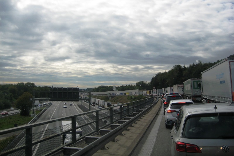 Opnieuw staat het op de rechter rijstrook volledig stil. Kilometers lang rijd ik er langs. Tis toch niet te geloven… Bij Nurnberg kom ik zelf ook heel even stil te staan bij wegwerkzaamheden, maar echt veel vertraging heb ik niet en even later neem ik bij Allersberg de afrit richting Freystadt. In Freystadt heb ik een camperplaats uitgekozen, want het is al laat en morgenvroeg vertrek ik toch weer op tijd. En bij deze camperplaats hebben ze stroom en dat is eigenlijk het enige wat ik nodig heb.
