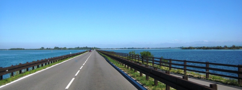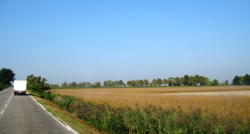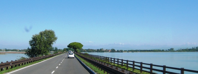 Ik heb zwaar de pest in en besluit Cavallino-Treporti en Lido di Jesolo dan ook maar gelijk voor gezien te houden. Nieuwe eindbestemming voor vandaag: Camping Fusina “aan de andere kant van Venetie”. De snelste weg om van Cavallino-Treporti naar Fusina te gaan, is met de boot vanuit Punta Sabbioni. Maar ja, dan moet je weer overstappen in Venetie en ik zit natuurlijk met de boot. En dus rijd ik via het vliegveld en Mestre en ga daarna zuidwaarts richting Ravenna. Een ritje van bijna 1 uur.