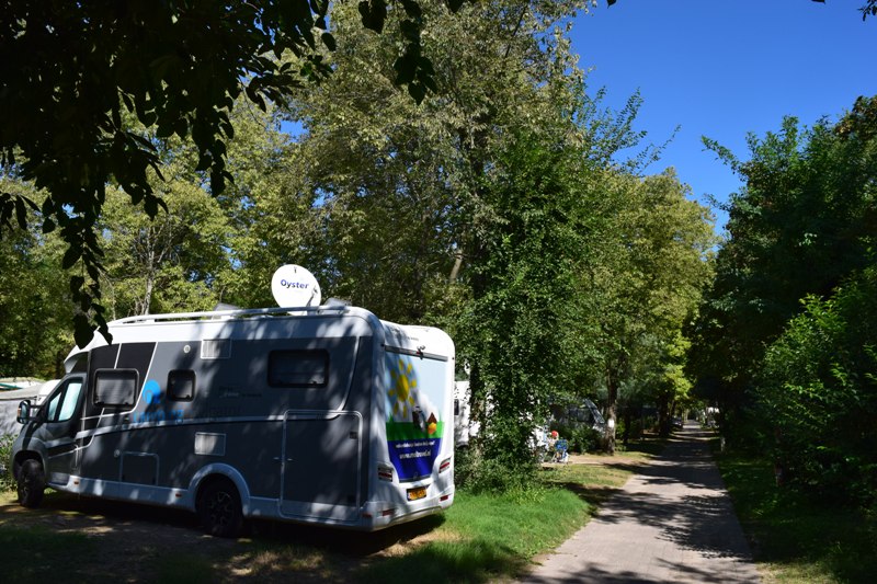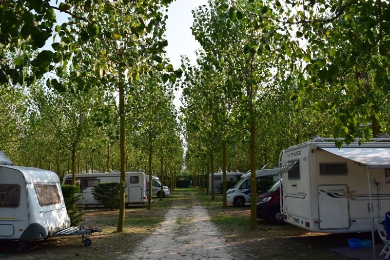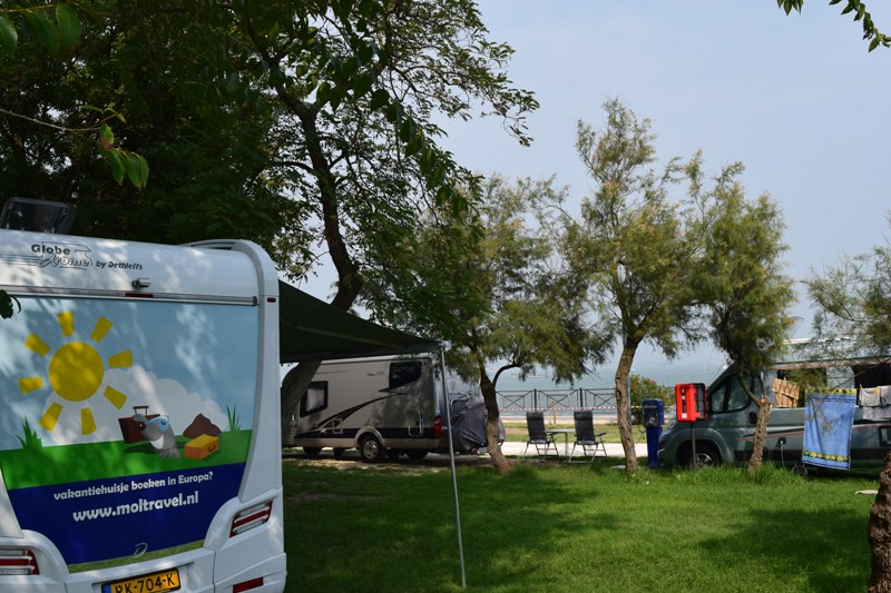 Mn eindbestemming voor vandaag is Camping Miramare in Punta Sabbioni op het uiterste puntje van het schiereiland. Vanaf Punta Sabbioni kun je met de boot naar Venetie en dus is de camping een geliefde plek voor kampeerders die Venetie willen bezoeken. Bij aankomst op de camping is de eigenaar niet aanwezig, maar de receptioniste herkent me en geeft aan dat ik maar een plekje moet zoeken en later vanmiddag naar de receptie terug moet komen. Even later heb ik de camper te plek, ongeveer op dezelfde plek (nr. 422) als vorig jaar: