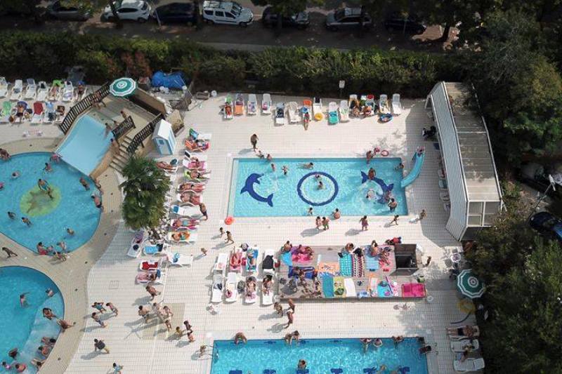 dit is “gewoon” buiten bij het sanitairgebouw. Prachtig! Naast de kampeerplaatsen beschikt de camping over een flink aantal mobilhomes en over een prachtig zwemparadijs: