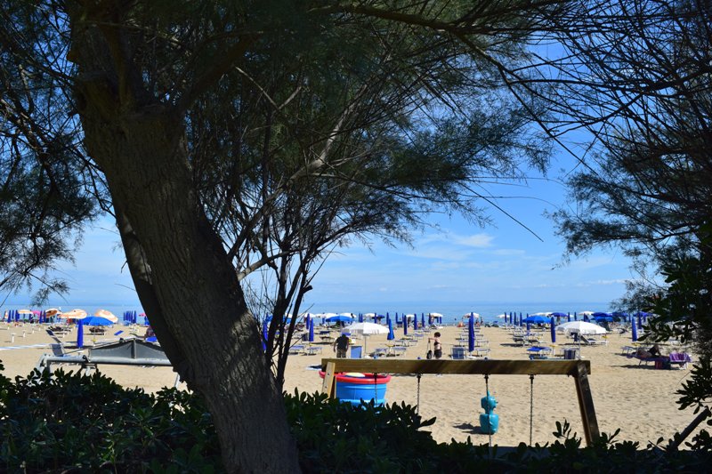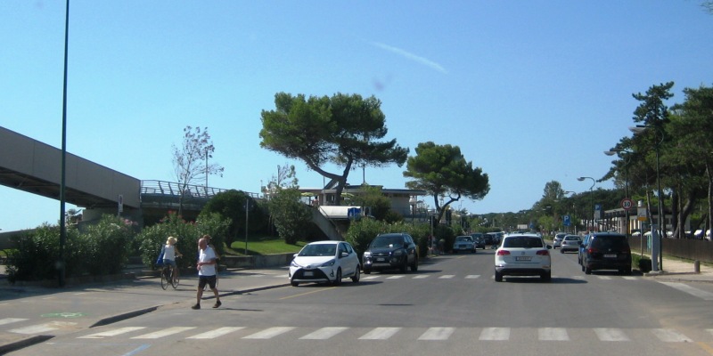 Waarom? Aan de linkerkant (niet zo goed te zien op de foto’s) zie je continue een prachtig mooi strand liggen, met aan de wegzijde diverse strandpaviljoens. En overal strandaanbidders en vakantiegangers. Ik rijd door en even later meld ik bij de receptie van Camping Village Pino Mare. Eerlijk gezegd 1 van mn meest favoriete campings welke ik in Italië bezoek. Zeer goed verzorgd, een prachtig zwemparadijs, uitstekend sanitair en gelegen aan een prachtig zandstrand. Toplocatie: