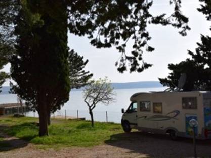 Nu kunnen we lekker doorrijden en klokslag 15.07 uur rijden we door de tolpoortjes bij Maslenica. Kosten voor dit stuk tolweg 180 kuna = € 24. Camping Plantaza ligt nu nog een kwartiertje verderop en even later rijden we de camping op. Ook deze camping is een klant, maar de eigenaar blijkt nog niet aanwezig. Hier overnachten is geen probleem en dus hebben we de camper even later te plek.