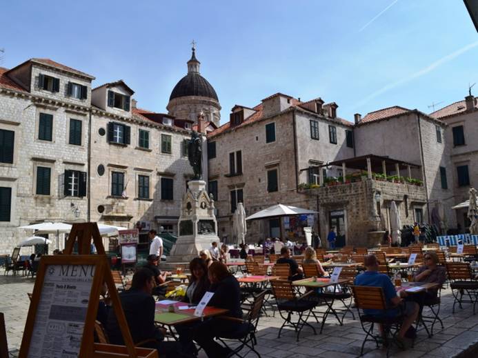 Het is overigens vandaag behoorlijk drukker geworden en de terrasjes zijn gezellig bezet. Op het Gundulic Square – waar veelal marktkraampjes staan – is het niet anders: