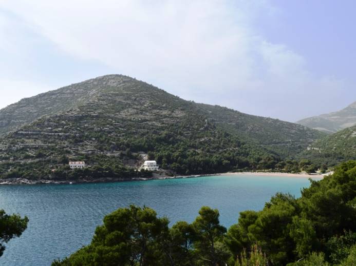 Bij de camping is inderdaad niemand aanwezig en ook telefonisch krijg ik niemand te pakken. Jammer. En dus gaan we weer verder het eiland op. Einddoel is eigenlijk Lociste, helemaal aan het eind van het eiland, maar ik twijfel nog of dat wel moeten doen. De camping daar was ook telefonisch niet te bereiken (zou wel open moeten zijn) en het is – vanaf Ston – nog 1,5 uur rijden.