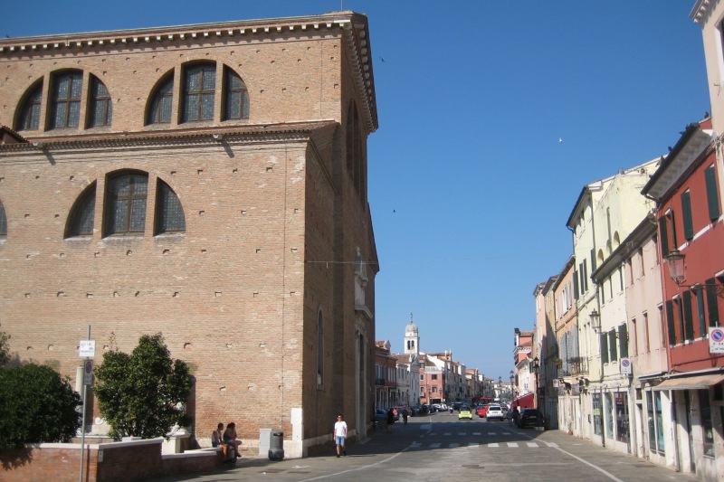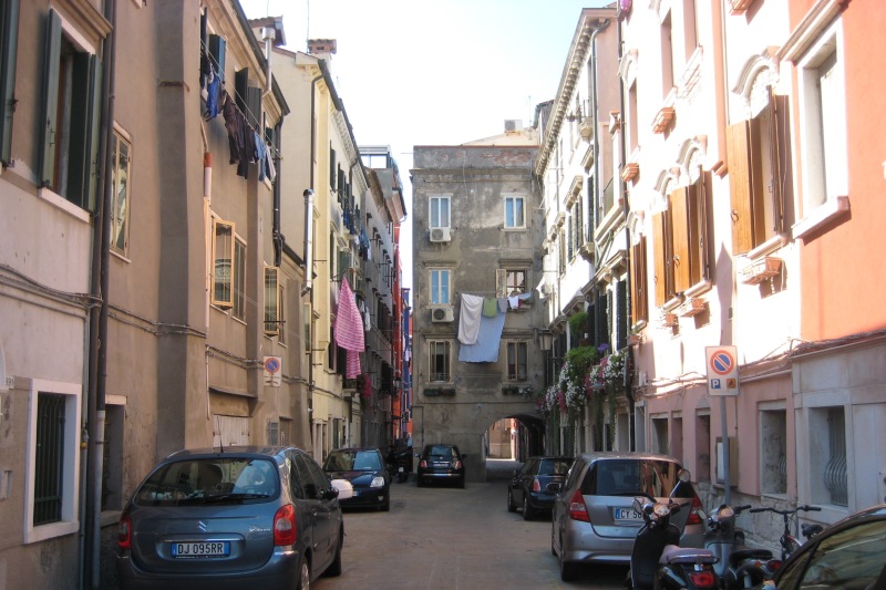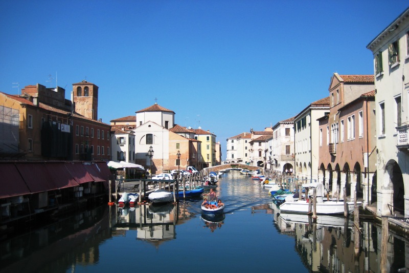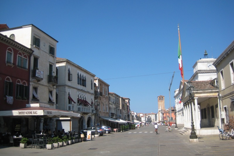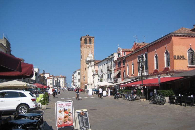 Even later hebben we een plekje voor de fiets gevonden en is dit de 1e aanblik van de hoofdstraat van Chioggia: