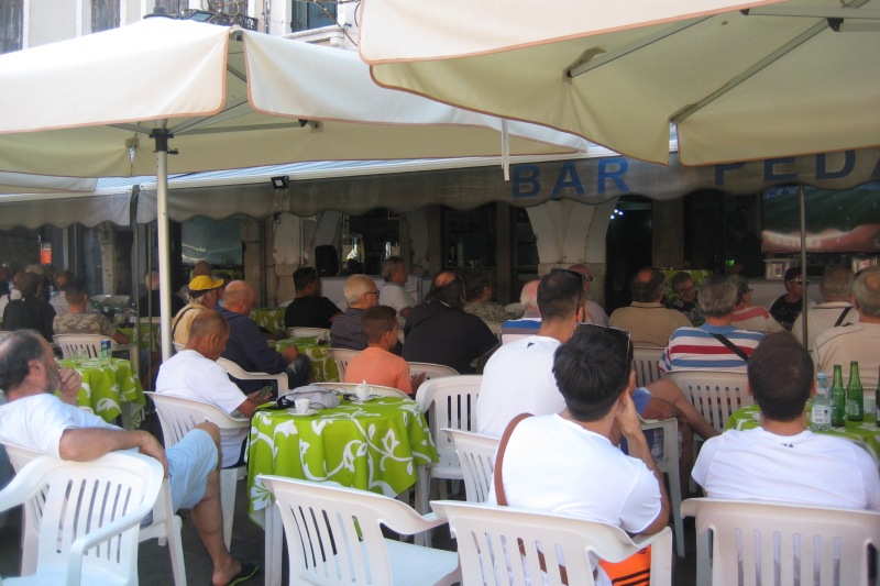 Wat het is? Gewoon …. Juventus – Sassuolo (eindstand 2-1) en eigenlijk staat de tv zo’n beetje midden op het terras. Ook opvallend: iets van 75% heeft niets besteld, schijnbaar hoeft dat dus ook niet. Tja … dat ga je in Nederland niet redden, maar vind je volgens mij ook geen grote tv’s bij de terrasjes. In Meppel in ieder geval niet.
