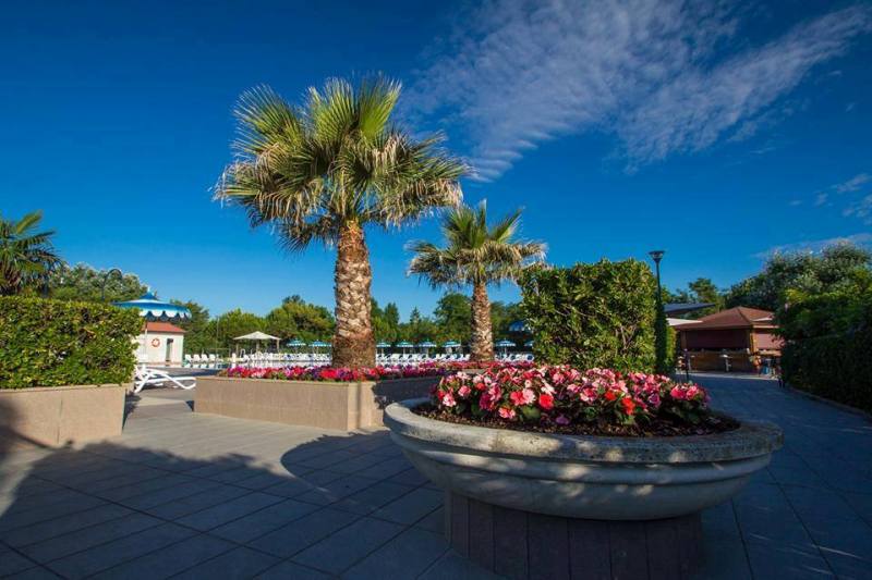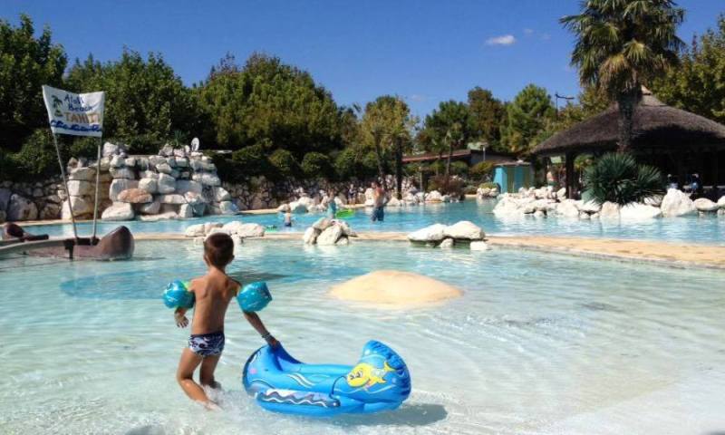 Ik word vriendelijk begroet door mn contactpersoon Gianmarco en krijg eerst – met een golfkarretje – een rondleiding over het park. Jammer genoeg is de camping net dit weekend gesloten, anders hadden we nog op deze mooie camping kunnen overnachten. Tahiti Camping e Thermae Bungalow Park beschikt over grote kampeerplaatsen, diverse soorten bungalows en mobilhomes (waaronder zeer luxe), over 3 zwembaden: