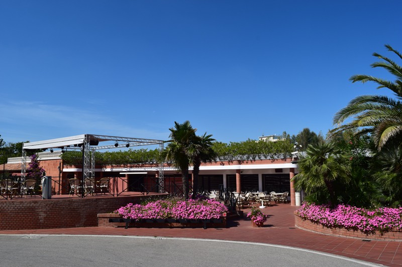 En dus ga ik naar de volgende klant: Camping Miramare. Daar staat eigenaar Alessandro me al lachend op te wachten. Ze hadden het net vanmorgen over me gehad en hij had me zo straks zien rijden. Ik heb natuurlijk nogal een opvallende camper Hij heeft direct wel even tijd en dus zitten we even later in gesprek in de vernieuwde receptie. Na het gesprek vraagt hij of ik hier wil overnachten. Dat is me vorig jaar goed bevallen en ik heb nog heel veel werk te doen en dus ga ik op zn aanbod in en sta even later achter op de camping, op een mooi plekje tussen het zwembad en het strand: