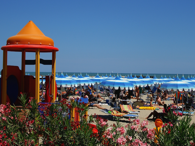 Was het hier eerder levensgevaarlijk (omdat Italianen al slingerend tussen het verkeer door inhaalden), nu is het er rustig. Rustig in de zin van “er wordt niet ingehaald”. Want de SS309 is volledig vol. Grotendeels met vrachtwagens die bij Mestre de shortcut nemen richting Ravenna. Ze hoeven dan niet om te rijden via Padova, Ferrara en Bologna en sparen bovendien aardig wat tol uit. Met als gevolg dat er op de SS309 geen doorkomen aan is. Maar goed, ik bereikbaar heelhuids Chioggia of eerlijk gezegd Sottomarina di Chioggia, want daar liggen alle campings …. ca. 15 !