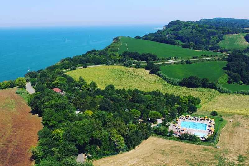 Tegen 11.30 uur rijd ik Camping Panorama op. Deze camping ligt op een prachtige plek vlakbij de stad Pesaro. Aan de Strada Panoramica. Vanaf deze weg (hoog gelegen) heb je een prachtig uitzicht op zee. Daarvoor moet je wel even stoppen, want de bochtige weg nemen EN genieten van het uitzicht, dat lukt niet samen. Zo ligt de camping: