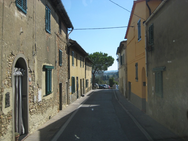 Nou … daar is geen woord van gelogen. Je hebt er echt een geweldig uitzicht over de Chianti en er heerst een oorverdovende stilte De eigenaresse is helaas niet aanwezig, maar de receptioniste helpt me met de papieren en ik laat mn voorstel achter. De weg loopt door het dorpje Marcialla en als je hier de winkel/woning uit stapt, moet je echt eerst kijken of er wat aankomt: