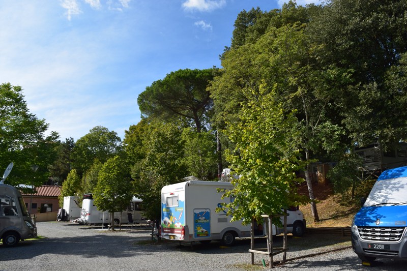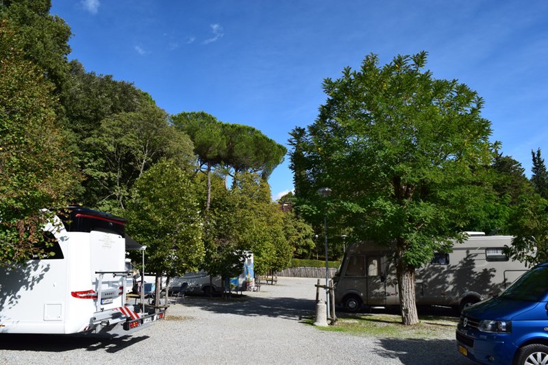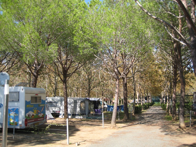 Op deze camping kom ik al vele jaren en persoonlijk vind ik het een heerlijke plek. Ik word ontvangen door de vriendelijke eigenaar (die alleen maar Italiaans spreekt) en als ik het goed begrepen heb, vraagt hij me na 15.00 uur terug te komen. En dus rijd ik de camper naar mn vaste stekkie hier op de camping: