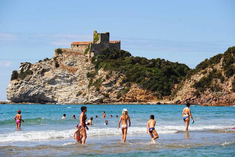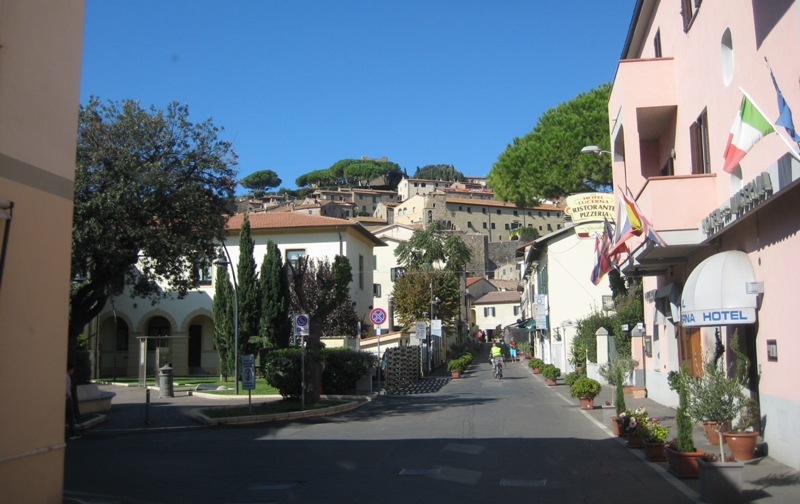 Ik rijd over de kustweg vlak langs het strand en bereik even later het stadje Castiglione della Pescaia: