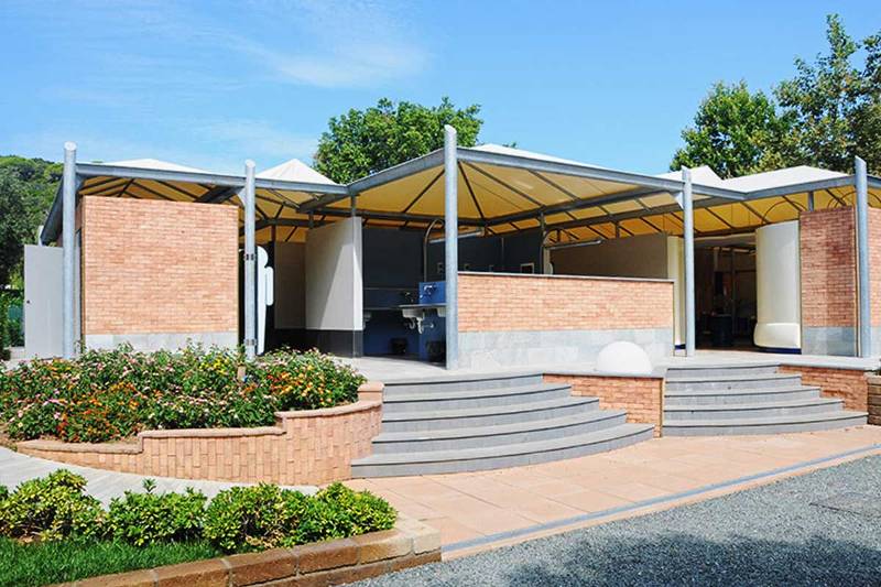 Gisteravond koelde het gelukkig nog iets af en heb ik vannacht eigenlijk prima geslapen. Vanmorgen ga ik eerst even richting het prachtige (redelijk nieuwe) sanitairgebouw van Camping Village Baia Azzurra Club: