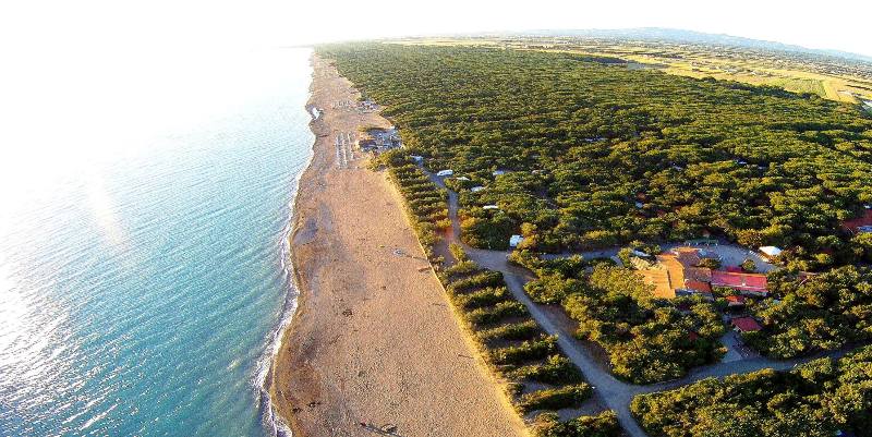 Bij Grosseto-Sud neem ik de afslag en rijd richting de kust. Eerste klant is Camping La Principina in Principina a Mare. Normaal gesproken is het in dit soort plaatsen een drukte van jewelste, maar in het voor- en naseizoen is het hier lekker rustig. Op het verkeer hoef ik dus niet te letten, wel op het verschrikkelijke wegdek hier. Het asfalt staat helemaal “bol” van de vele wortels (van de bomen …) en door de schaduw kun je het niet goed zien. Als je over zo’n bult rijdt (met gang), word je zelfs met de camper gelanceerd.