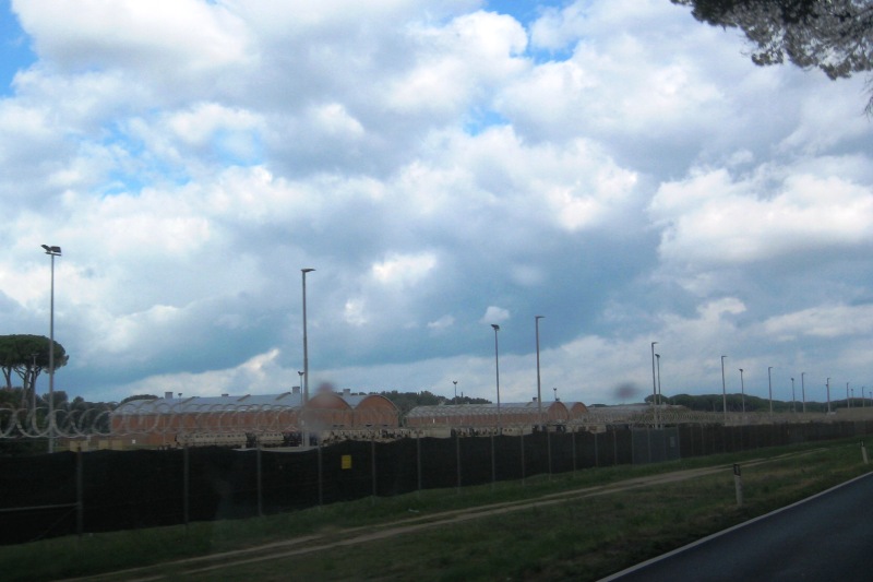 Even later passeer ik Livorno en neem ik de afslag. Ik ben nu iets van 10 minuten van Pisa verwijderd. Eerst nog even proberen om mn contactpersoon van een camping in Marina di Pisa te bereiken, maar nee hoor. En dus rijd ik door naar Camping Lago le Tamerici in Coltano. De afgelopen 5 jaar rijd ik hier steeds langs en nu moet het me toch een keer van t hart: kilometers lang rijd je langs Camp Darby, een voormalige VS legerbasis met een oppervlakte van maar liefst 1.000 ha. Tis echt niet te geloven. Het is de grootste legerbasis welke de VS buiten hun eigen land hebben. Maar het verhaal gaat (is volgens mij nog steeds niet rond) dat de VS het aan Italie wil teruggeven. Intussen staan duizenden legervoertuigen weg te rotten/roesten. Dan kun je gewoon vanaf de weg zien: