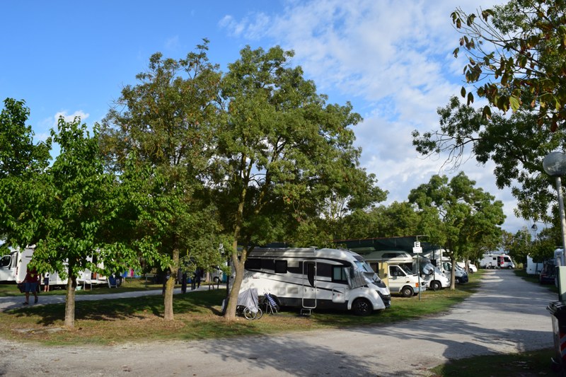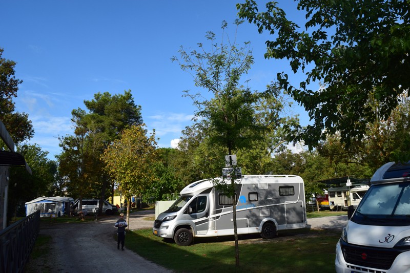 De meeste van deze plaatsen op de foto hierboven liggen onder “schaduwdoeken” en het staat behoorlijk vol. Ook niet zo verwonderlijk. Want Camping Village Torre Pendente ligt niet alleen op loopafstand van de Torre Pendente (= scheve toren), maar beschikt ook over een pizzeria, een campingwinkeltje, een zwembad met een gezellig terras en goede sanitaire voorzieningen: