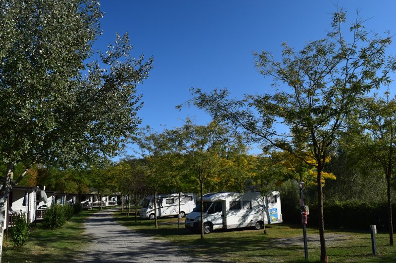 Vanmorgen maak ik eerst nog even gebruik van het sanitair hier op de camping, eet een broodje in de camper, check – gewapend met een bakkie koffie – nog even mn mail en maak daarna de camper klaar voor vertrek. Eindbestemming voor vandaag: Camping Arizona in Tabiano vlakbij Parma. In totaal ca. 2.5 uur rijden, maar onderweg heb ik nog een paar campings op het programma staan.