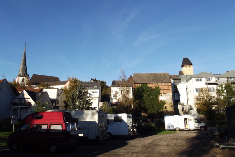 Uiteindelijk rijd ik – het is inmiddels donker – Bad Camberg binnen en hoop toch echt dat er nog een vrij plekje is. De camperplaats in Bad Camberg ligt in een soort van park en ja hoor … er is nog plek. En ik kan zelfs nog stroom pakken. Omdat het inmiddels ook nog flink is gaan regenen, mik ik er maar gelijk € 2 in. Heb ik voorlopig genoeg. Zo … nu nog even eten en dus mik ik een visfiletje van Iglo in de oven en zet eerst een bakkie koffie. Want daar ben ik wel aan toe.