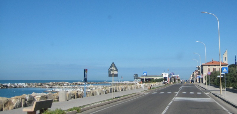 Met Fabio kan ik het goed vinden (een paar jaar terug mocht ik hier overnachten terwijl de camping al gesloten was, hij gaf me toen de sleutel van de poort zodat ik er zelf in en uit kon ) en ook nu hebben we een leuk en zakelijk goed gesprek. Na het gesprek opent hij de poort weer en rijd ik de boulevard op: