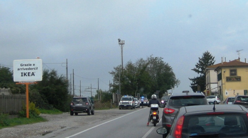 Op zich niet zo gek, dat hier wat gebeurt … want het is echt megadruk op deze weg. Toen ik heel lang geleden de eigenaar van Camping Village Torre Pendente een keer vroeg of ik met de scooter naar Lucca kon, zei hij “kan wel, maar ik raad het je heel erg af”. Ben toen maar met de bus gegaan …