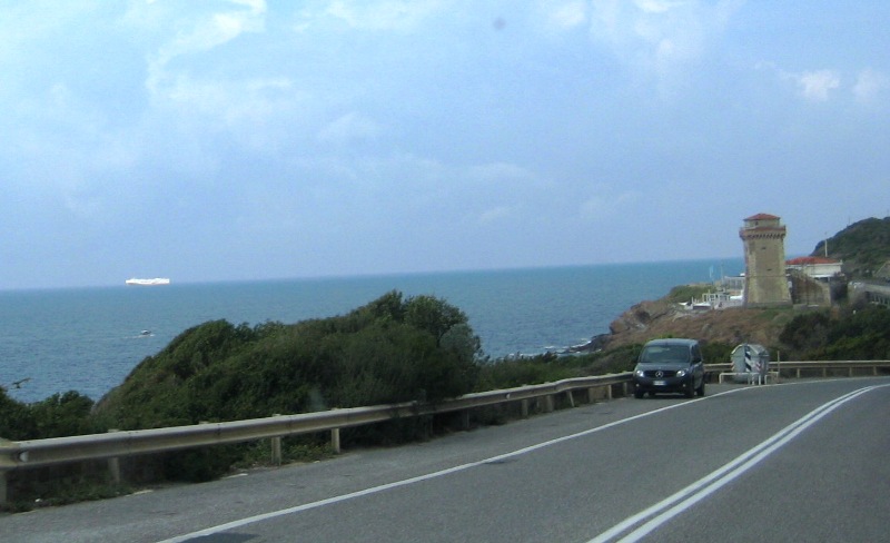 De 2 foto’s hierboven zijn van vorig jaar. Dit keer zie ik in de verte een groot schip. Ik denk eerst dat het een cruiseschip is (gaan naar Livorno, voor een bezoek aan Pisa), maar even later zie ik dat het de veerboot (Livorno – Elba of Livorno – Sardinie) is: