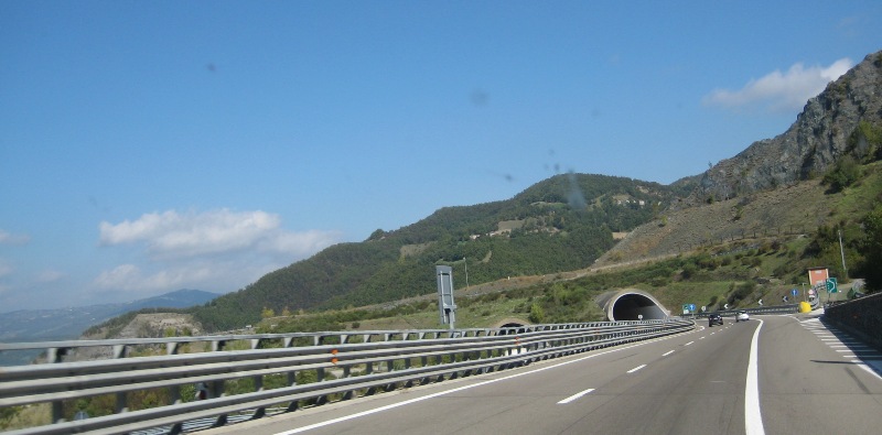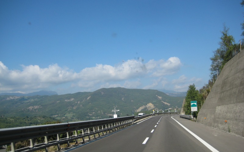 Even verder neem ik de E33 richting Parma. Deze tolweg is goed te doen met de camper, maar behoorlijk bochtig en op sommige stukken best steil. Enne … je kunt er op dit stuk wel een cd-tje in drukken, want er liggen ook flink wat tunnels. Op het meeste bochtige en steile stuk, is de weg behoorlijk vernieuwd: