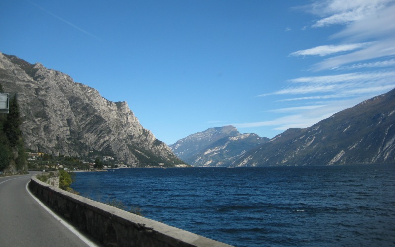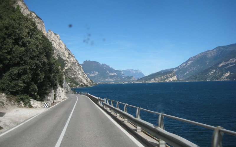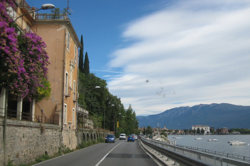 Af en toe rijd het even, maar vervolgens zie ik op de matrixborden iets van “fine 17.5km Desenzano” staan. Volgens mij betekent dit dat de ellende pas over 17.5km voorbij is. Iets verder zie ik een afslag en besluit die maar te nemen. In de file bij de tolpoortjes heb ik vervolgens ruimschoots de tijd om te kijken waar ik nu afgeslagen ben en hoe ik nu naar mn eindbestemming (Arco, ten noorden van het Gardameer) zal rijden. Even later heb ik mn keuze gemaakt: ik rijd richting Salo en dan toch opnieuw (net als vorig jaar) links van het Gardameer richting Riva del Garda.