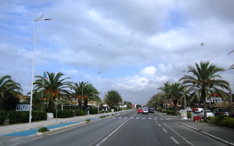 Ik besluit dit keer maar om Viareggio heen te rijden. Vanwege de drukte en omdat ik de vorige keer ineens vroeg een bruggetje stond waar ik met de camper niet over mocht. Mn navigatiesysteem stuurt me mooi langs Viareggio en even later rijd ik over de brede boulevard iets ten noorden van Viareggio: