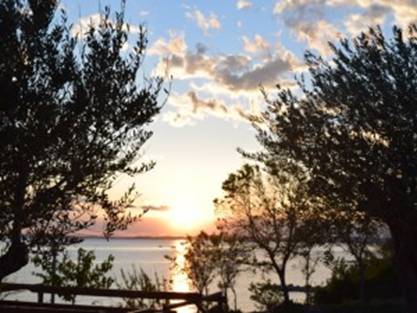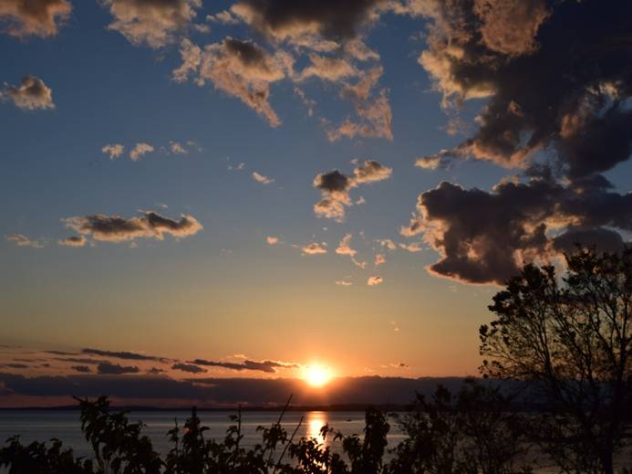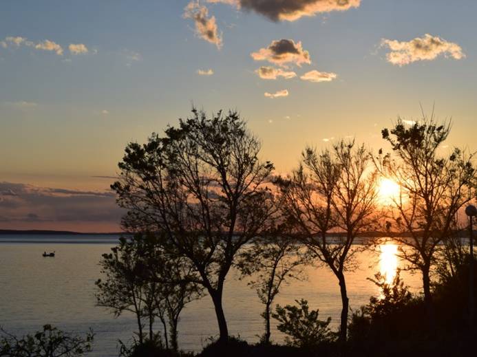 Sjonge jonge …. wat is dit toch een leuke camping! Interesse? Kan dan even op www.camp-miocic.com. Tip: kom in het voor- of naseizoen! Later op de middag gaat de wind wat liggen en na het eten (pannekoekuh !) genieten van de ondergaande zon en de prachtige lucht. En uiteraard weer een bootje ha ha: