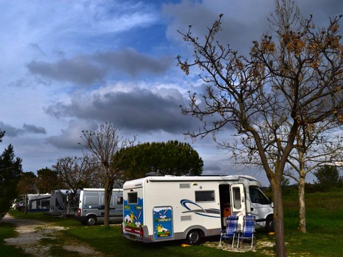 Het veldje waar wij staan (nagenoeg direct aan het water) wordt in het voorseizoen gebruikt omdat dan nog niet alle sanitairgebouwen open zijn, maar verder op de camping zijn ook nog mooie (zeer grote !) kampeerplaatsen direct aan het water. Komende winter staat er heel veel te gebeuren op Camping Pila, maar daar mag/kan ik nu nog niet over uitwijden.