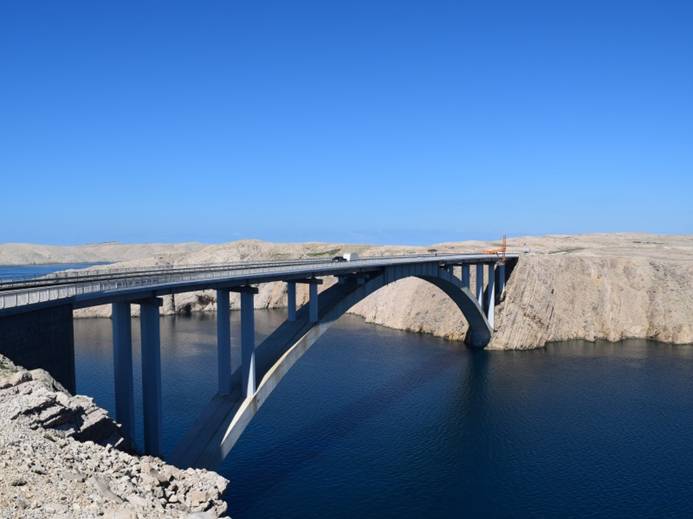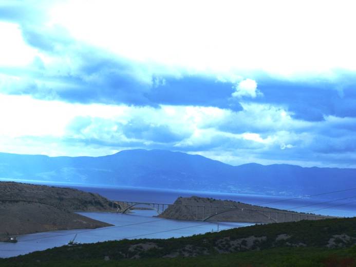 Naar onze eindbestemming: Njivice Camping Resort is het nog ongeveer een half uur rijden. Even later krijgen we de (tol)brug richting Krk in het vizier…. wauw: