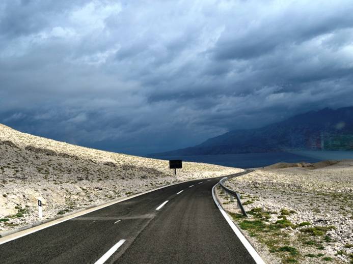 Vandaag gaan we het eiland Pag weer verlaten. Eindbestemming: Krk. De veerboot van Zigljen – Prizna vertrekt om 10.00 uur en dus maken we de camper al op tijd klaar voor vertrek. Op Camping Strasko nog even de vuilwatertank legen, afmelden bij de receptie, nog wat kuna’s pinnen en op naar de haven van Zigljen. Als we bijna in de haven zijn rijden we nog in het zonnetje, maar aan de overkant is het – zoals voorspeld – geen mooi weer meer:
