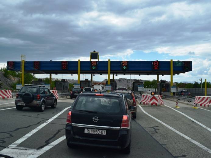 Bij de tolpoortjes is het een drukte van jewelste en dat was te verwachten wat onderweg waren we al een enorme stroom Slovenen tegen gekomen. Die hebben – vanwege 1 mei – een lang weekend vrij en dus is het even dringen geblazen bij de tolpoortjes:
