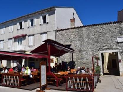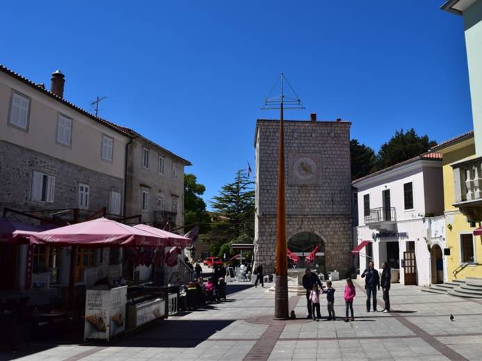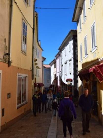 De bushalte ligt vlakbij Camping Pila en het busstation van de stad Krk ligt aan de rand van het centrum. We pakken de bus van 11.15 uur. De prijs valt ons – in vergelijking tot eerdere busritjes – iets tegen. Voor een retourtje betalen we 46 kuna = € 6,12 per persoon. Maar even later stappen we inderdaad in het centrum van Krk uit. Superrrr. We lopen even over “de markt” (paar kraampjes) bij het busstation en gaan via de wandelboulevard naar het oude centrum van Krk. Wauw!