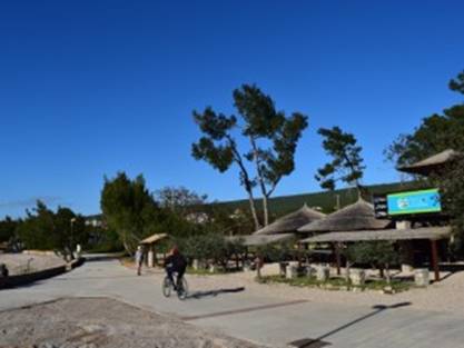 Vanaf de camping loop je op verschillende plekken de wandelboulevard op: