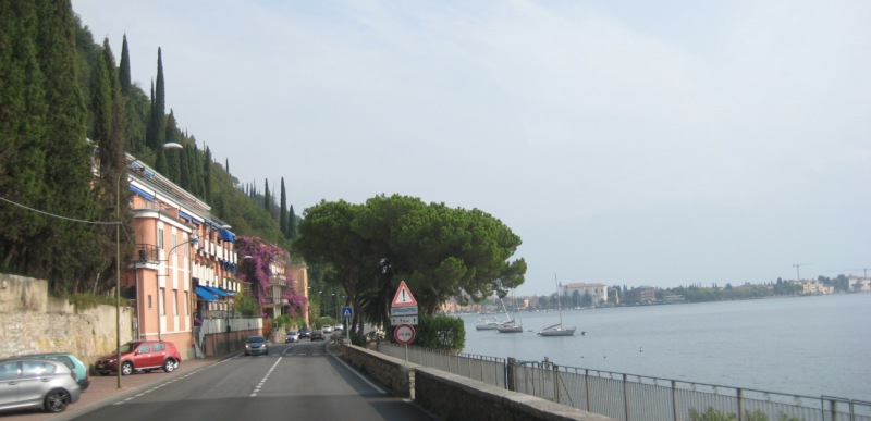 Ik twijfel nog even wat ik zal doen. Mn eindbestemming van vandaag is Arco wat aan de noordzijde van het Gardameer ligt. Ik heb me voorgenomen op langs de linkeroever van het Gardameer te rijden. Een prachtige route, maar dat kost iets meer tijd en daarom ben ik vorig jaar over de snelweg rechts langs het Gardameer gereden.