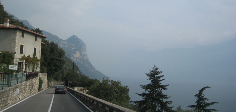 Typisch Toscane of niet dan? Maar goed, ik ben nu in Lombardije  Als ik Salo achter me gelaten heb, is het ook minder druk en wordt de weg smaller en smaller. Vorig jaar schreef ik dat ik deze route niet nam omdat het teveel tijd kost en ook omdat het smal en dus niet echt makkelijk rijden is. Vrachtwagens met aanhanger zijn hier niet toegestaan en dat begrijp ik volkomen. Onderweg heb ik (als ik geen verkeer tegenkom en op een recht stuk zit ….) een geweldig uitzicht op het Gardameer: