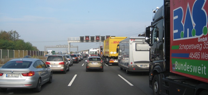 Het 1e stuk op de snelweg is nog geen probleem, maar als ik de snelweg van Kassel – Ulm ben overgestoken staat het ineens op de rechterrijstrook helemaal stil: